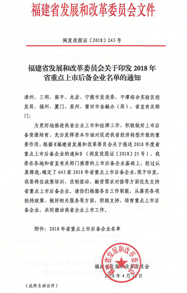 日前,省發改委公布了2018年省重點上市后備企業名單,共643家符合條件、成長性好的企業入選,涉及制造業、農業、現代服務業、戰略性新興產業、高新技術產業、綠色生態、文化創意等領域。 其中,福州154家、廈門126家、漳州58家、泉州124家、三明26家、莆田40家、南平35家、龍巖48家、寧德28家、平潭綜合實驗區4家。 我司有幸被納入2018年省重點上市后備企業單名,我司將堅持“不斷創新、設計經典、管理求實、服務求誠”的理念,著力打造一流的園林公司,憑借公司不斷發展的軟實力與硬實力及對市場的深入了解,專注為客戶鍛造經典美譽及呈現完美作品。