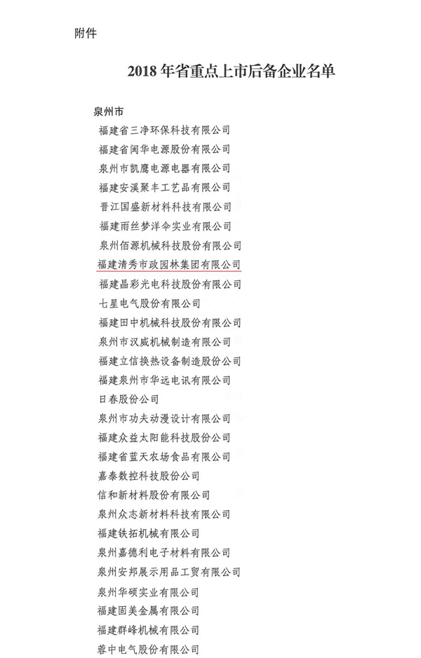 | 清秀市政園林集團—2018年省重點上市后備企業 |